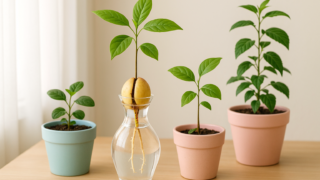 アボカドの種を食後に発芽させる基本ステップと注意点を初心者向けに丁寧解説!水耕栽培や植え替え、季節別のコツまで紹介。立派な観葉植物に育てたい方必見の育て方ガイドです。